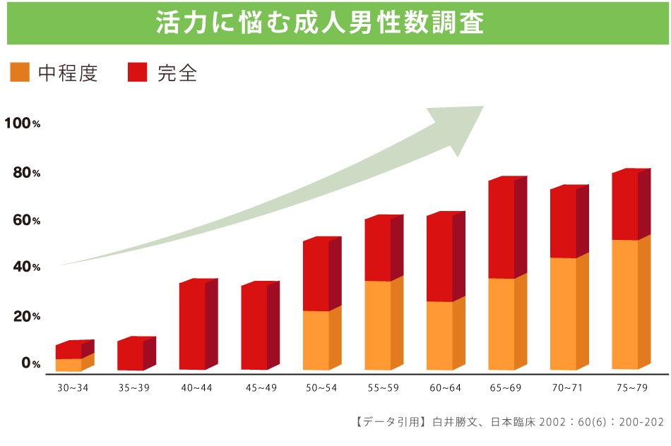 実は、成人男性の約4人に1人(約25%)、50代男性に至っては約2人に1人(約50%)の方がこの男性特有の悩みを抱えているとされています。