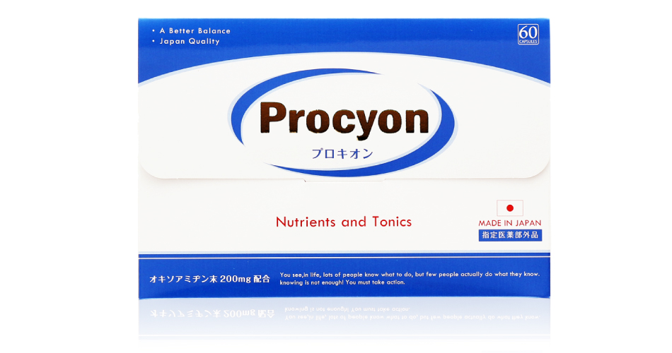 指定医薬部外品プロキオンは元気成分オキソアミヂンを特殊抽出し、たった2粒に凝縮させ、朝晩1粒づつ摂取することで有用性を発揮することを可能にしたのです。